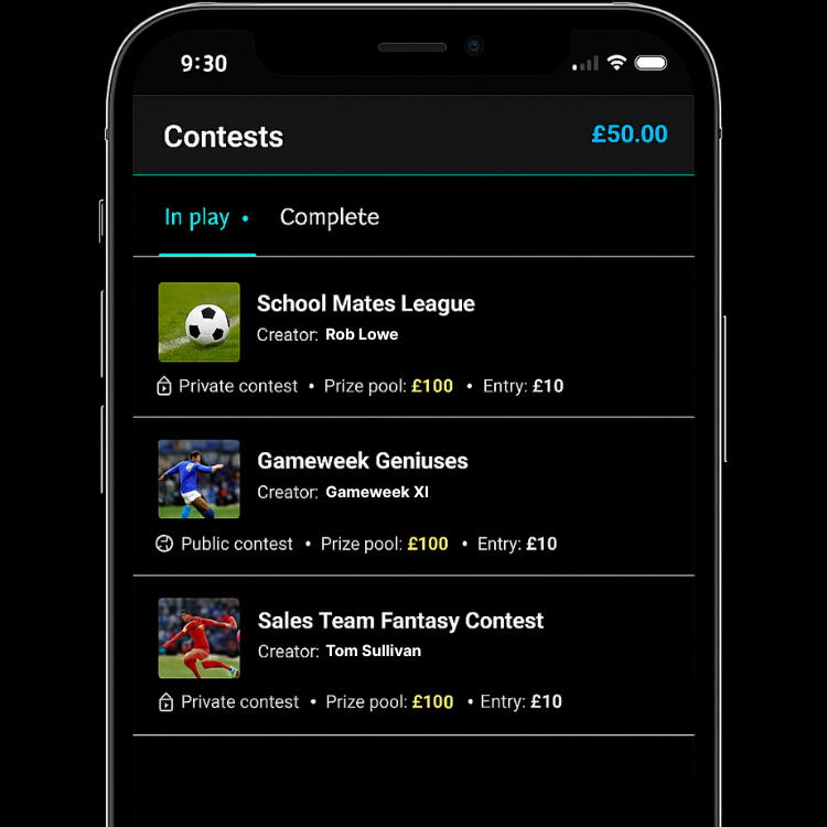 Play in private contests with your mates, and compete with the wider community in public contests.